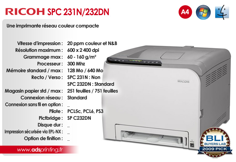 SPC 231N / 232DN Une imprimante réseau couleur compacte