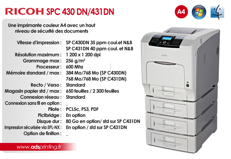 SPC 430DN / 431 DN Une imprimante couleur A4 avec un haut niveau de sécurité des documents