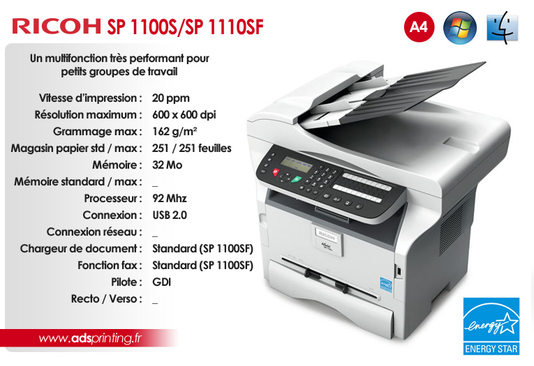SP 1100S / 1110SF Un multifonction très performant pour petits groupes de travail