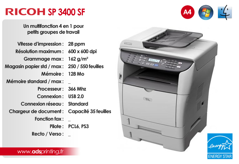 SP 3400SF Un multifonction 4 en 1 pour petits groupes de travail