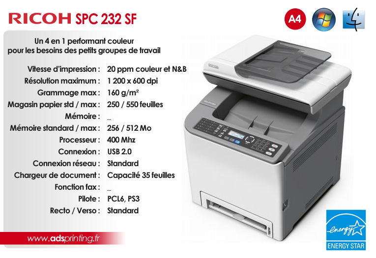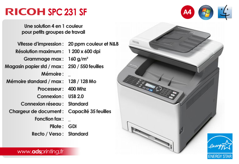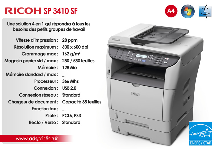 SP 3410SF Une solution 4 en 1 qui répondra à tous les besoins des petits groupes de travail