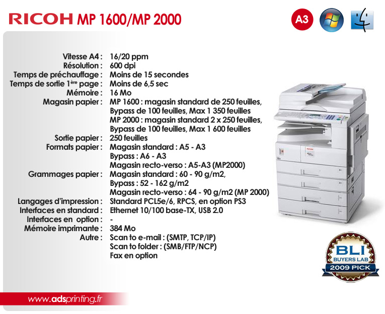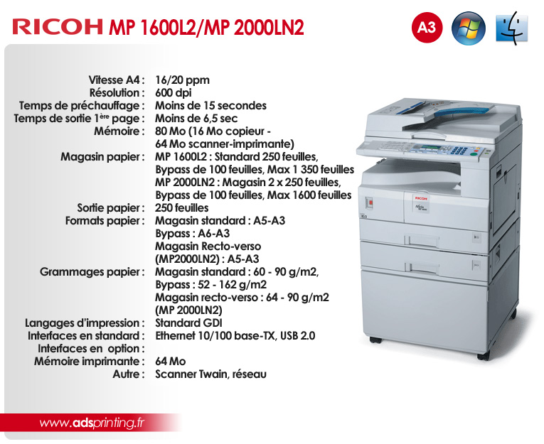 MP 1600L2 / MP 2000LN2 Imprimer vite et bien en préservant l’environnement et votre budget