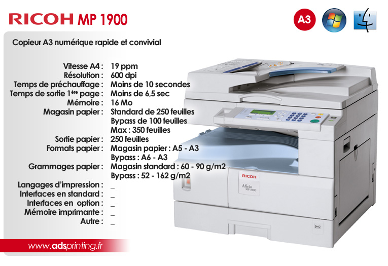 MP 1900 Copieur A3 numérique rapide et convivial