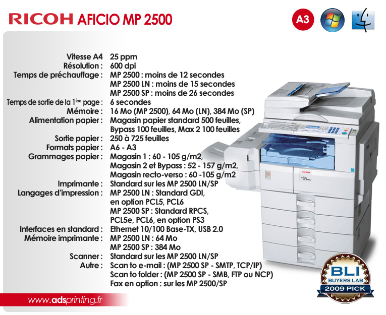 Aficio MP 2550 Solution A3 tout en un avec finition à faible coût