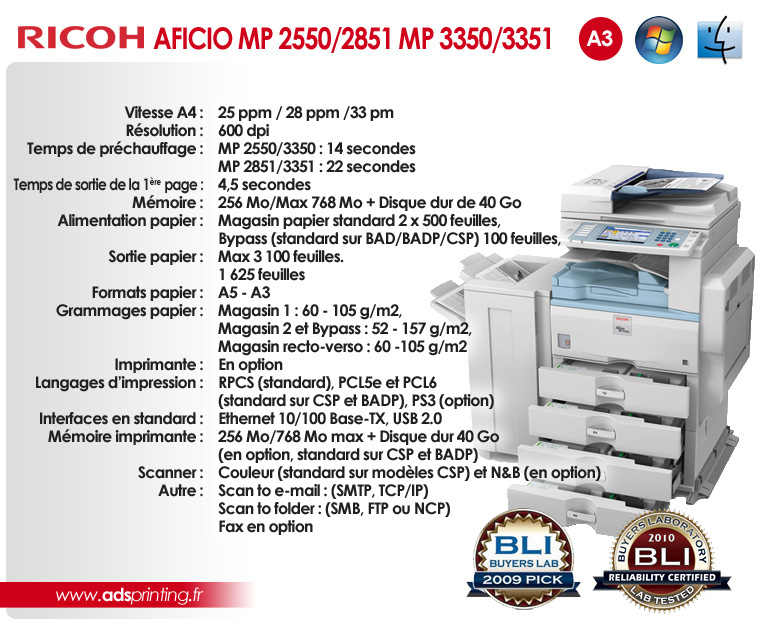 Aficio MP 2550 / 2851 MP 3350 / 3351 Des gestionnaires de documents à la hauteur de votre entreprise !