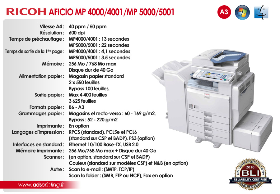 Aficio Mp 4000 / 4001 MP 5000 / 5001 Finition professionnelle et traitement sécurisé de vos documents