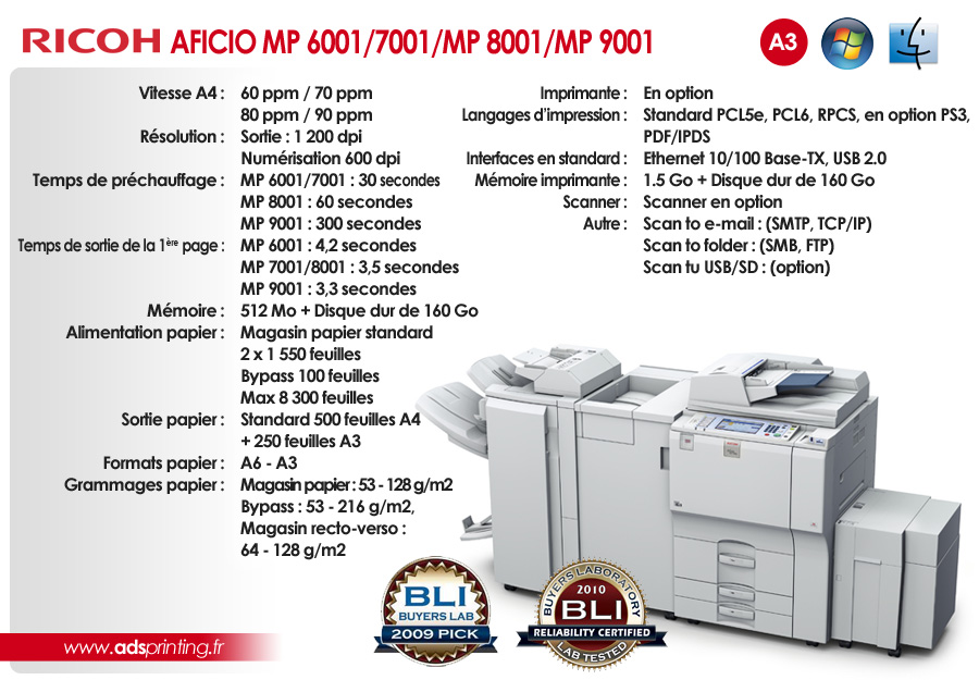 Aficio MP 6001 / 7001 MP 8001 / 9001 Solution de traitement de documents professionnelle ultra-performante